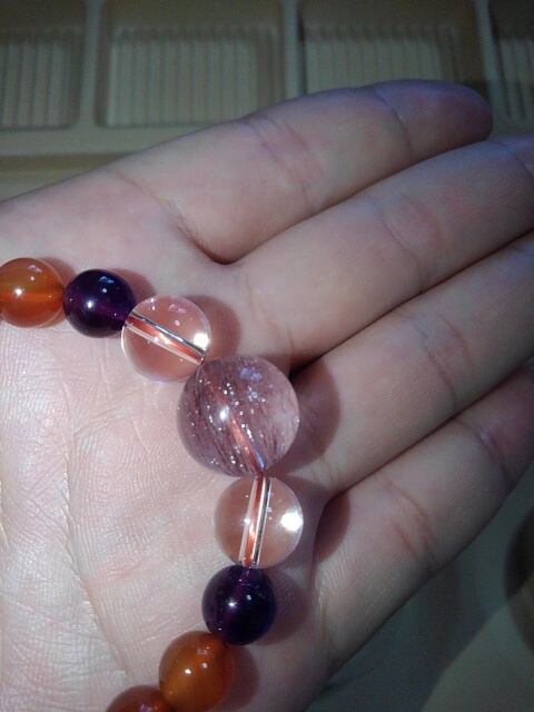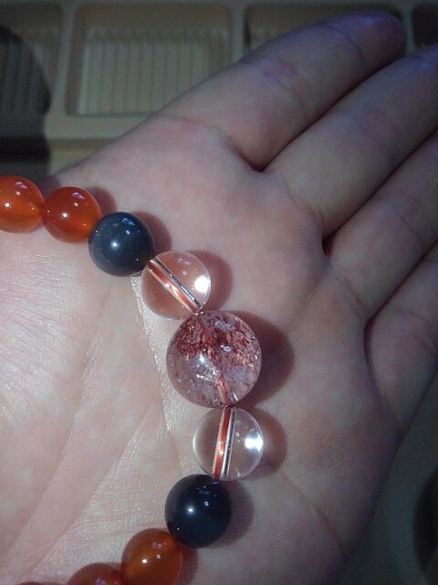 大きなファイヤークォーツとエレスチャルクォーツが目を引くブレスレットです。